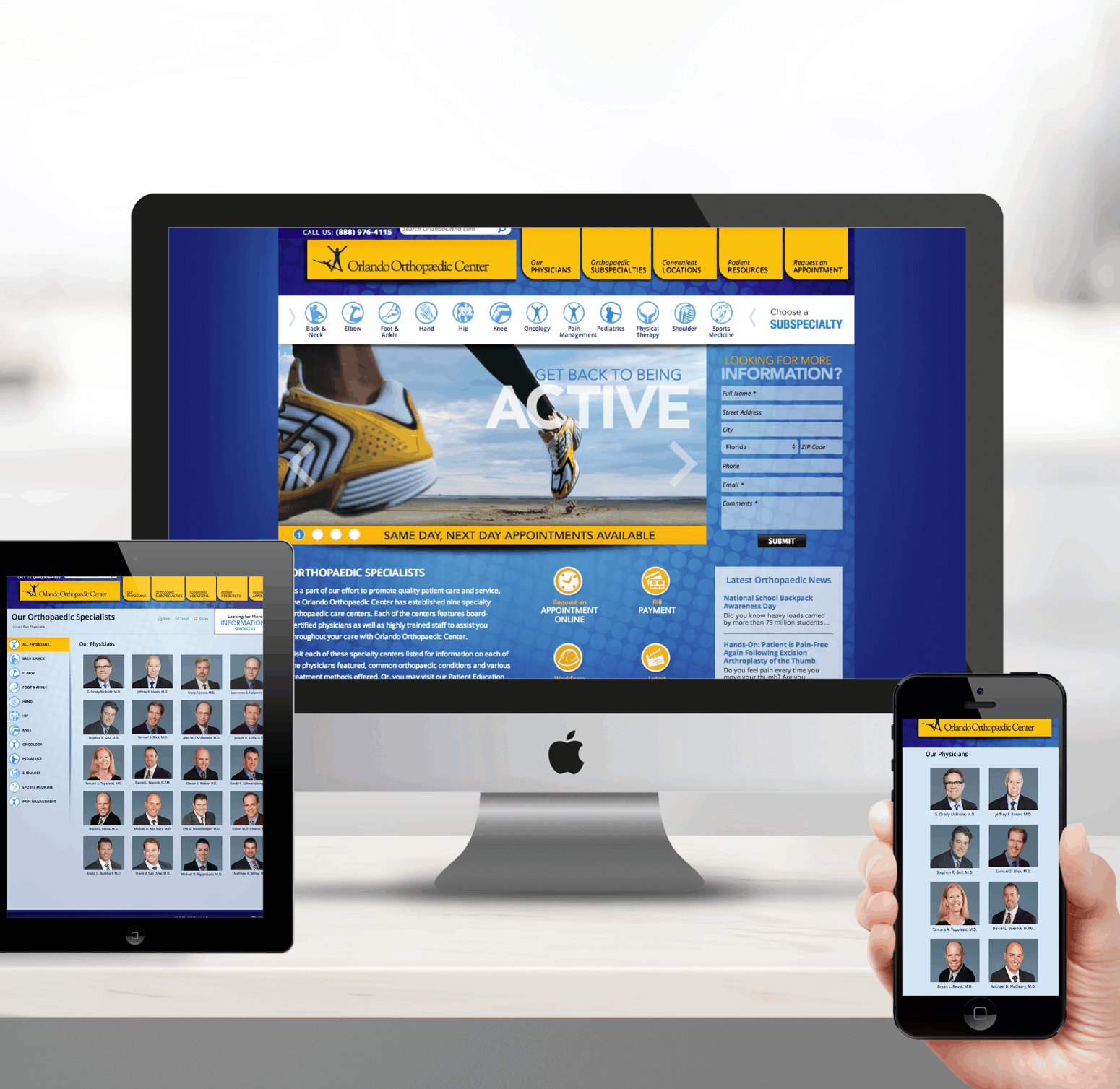 With an ample wealth of available content and information, one of our main objectives when reimagining the Orlando Orthopaedic website was ensuring ease of access.