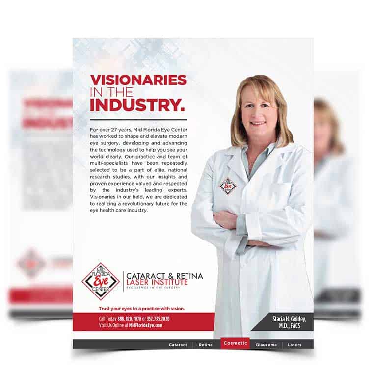 Working with Mid Florida Eye Center, our goal was to design original strategies and create innovative advertising collateral to reach potential new patients. While working to build the marketing presence of this established healthcare center, we simultaneously worked to further their overarching promise and vision.