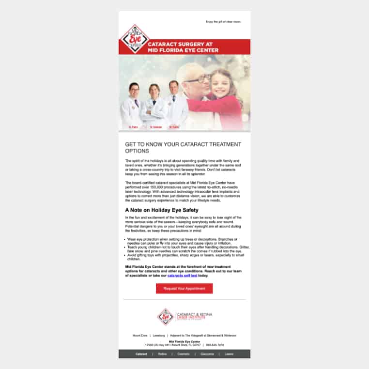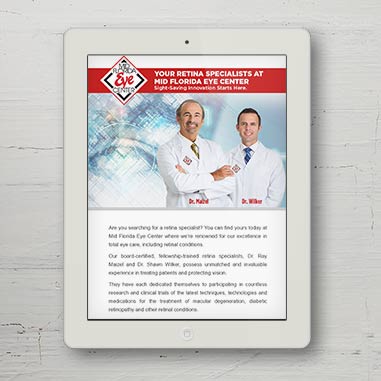 Leveraging Mid Florida Eye’s established reputation while updating their digital image, our team also created banner ads and email marketing to target potential patients.