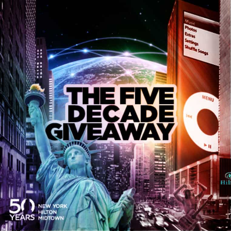 For the sweepstakes, we hosted five monthly contests for Facebook fans to win a three-night stay at the New York Hilton Midtown. Each contest post was paired with a themed graphic specific to each decade—60s, 70s, 80s, 90s, and 2000s—to showcase the legendary hotel’s 50 years of operation.