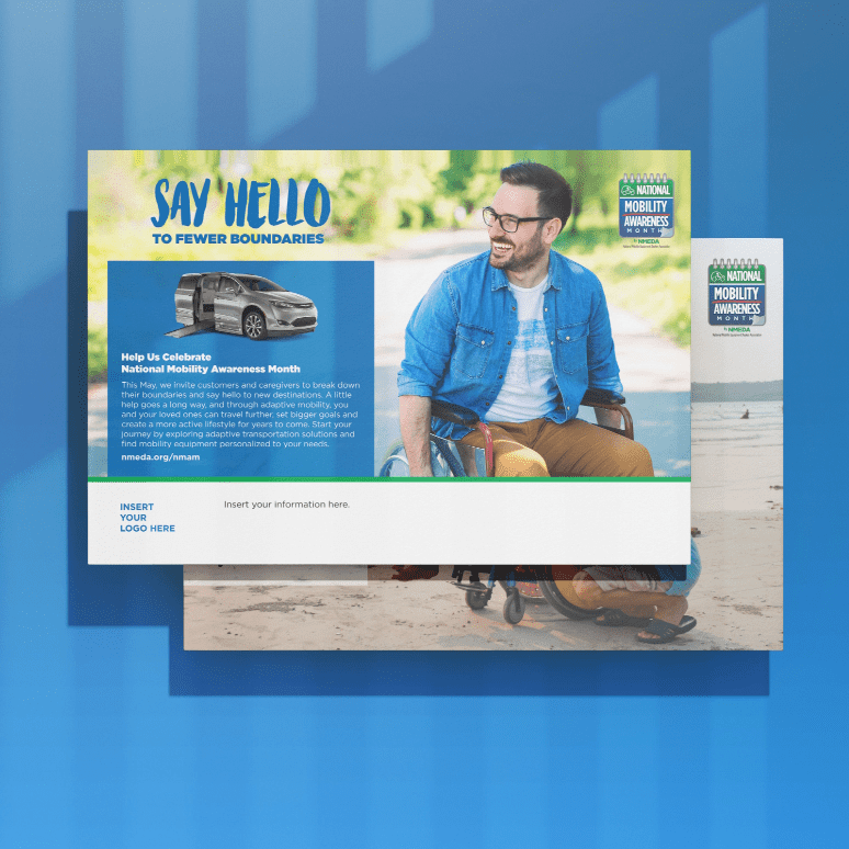 Every May, the National Mobility Equipment Dealers Association (NMEDA) celebrates National Mobility Awareness Month — an ongoing, Congressionally-recognized awareness campaign started in partnership with evok in 2012. Extensive planning, preparation, and production goes into marking this occasion each year, with our team working months in advance to maximize the campaign’s impact through fresh marketing materials, public relations strategy, industry partnerships, and more.